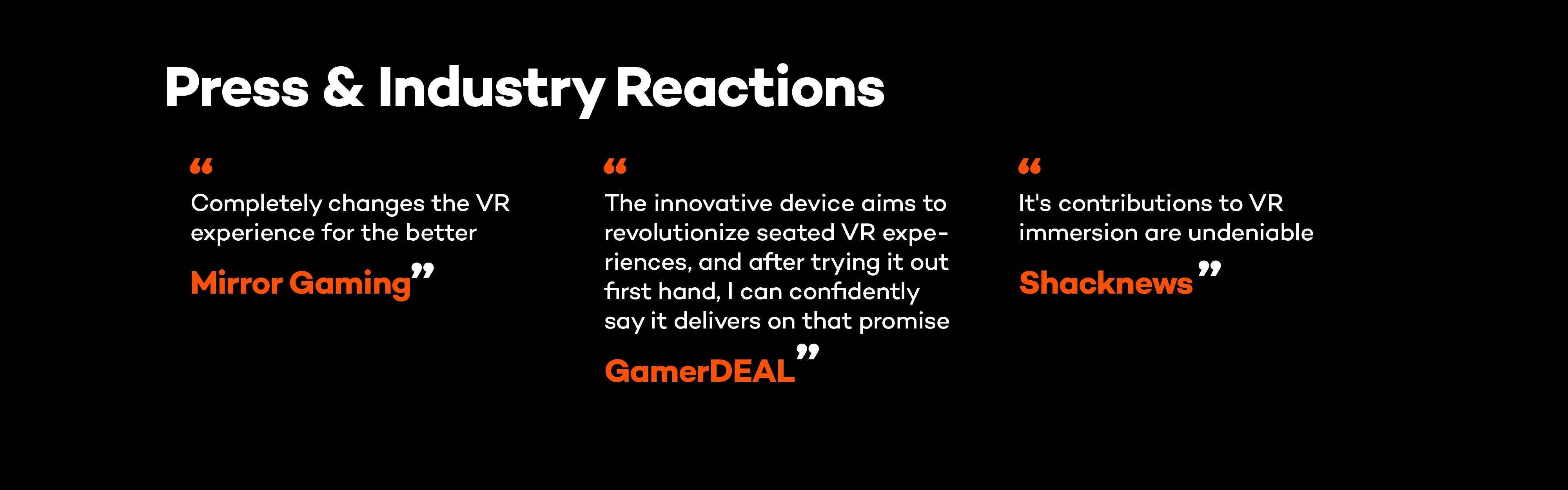 Nothing else comes close. Roto VR Explorer isn’t just a motorized VR chair—it’s the key to VR immersion like no other product in existence. Feel every turn, every impact, every motion as if you were truly inside the experience. No other system rotates with you, reacts to you, and pulls you deeper into virtual worlds this seamlessly, this powerfully, this completely.