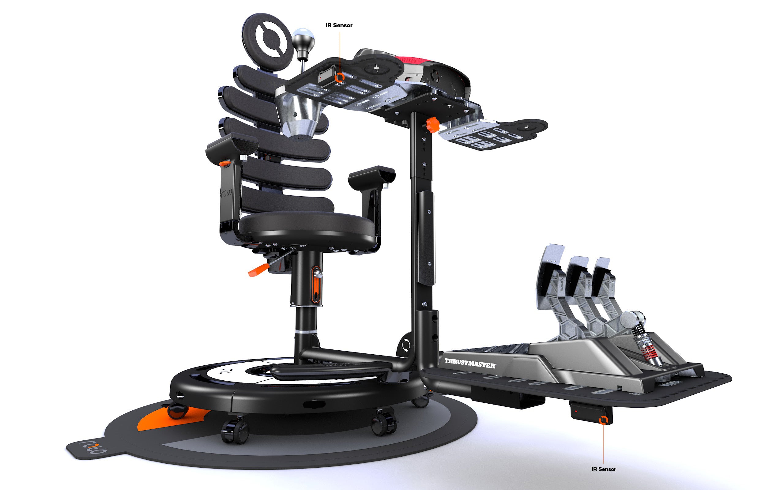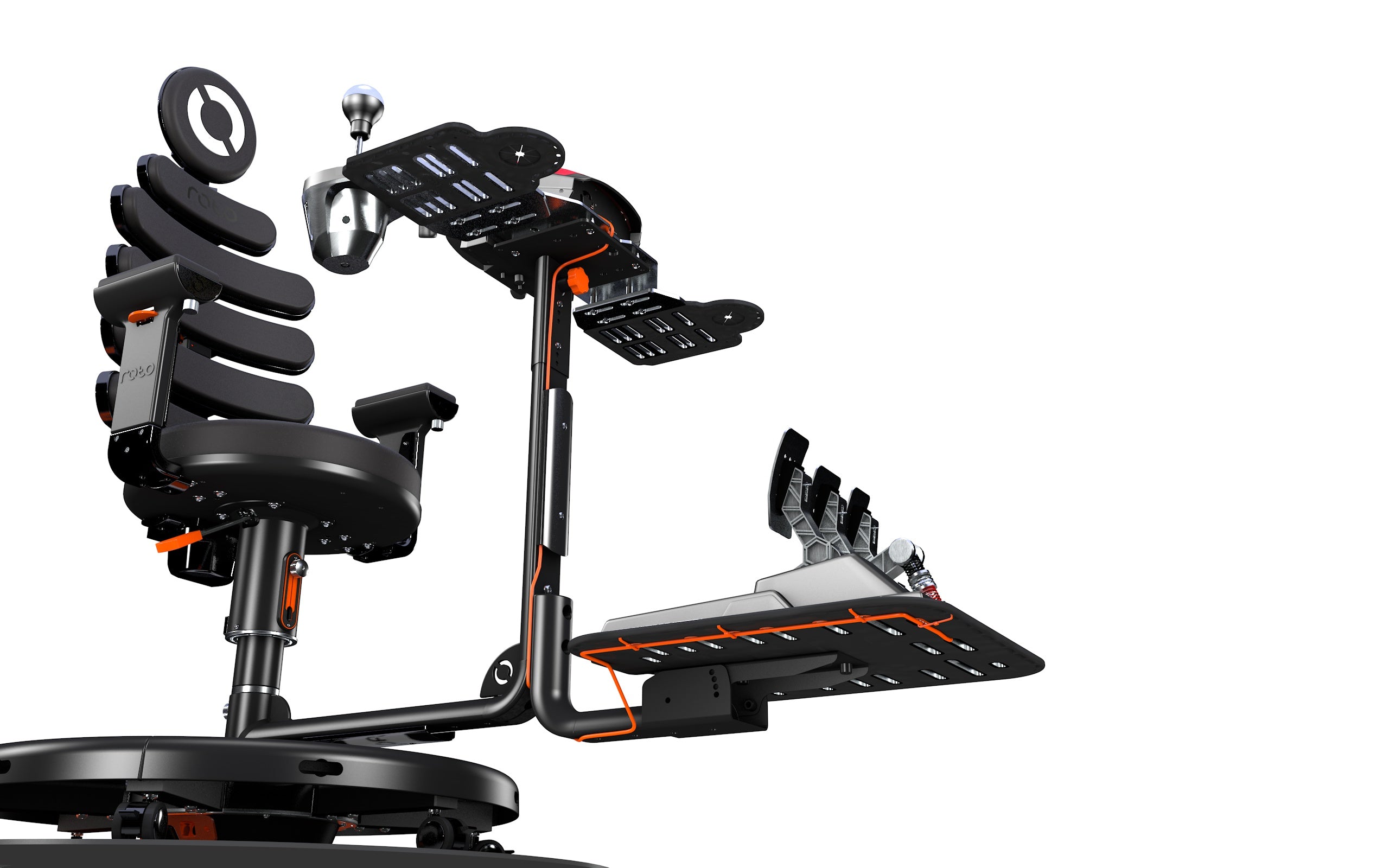 Roto becomes a motion simulator for PCVR enthusiasts by using the PC game’s orientation data to turn the chair. Your actual chair will match the in-game racing seat! Combining rotation, in-built haptics, stunning PCVR visuals and racing wheel (and pedals) creates an incredibly immersive gaming experience you can’t find anywhere else.